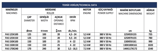 FAS ASTAR SİLİNDİR MAKİNESİ (125x100, 125x150, 150x100)